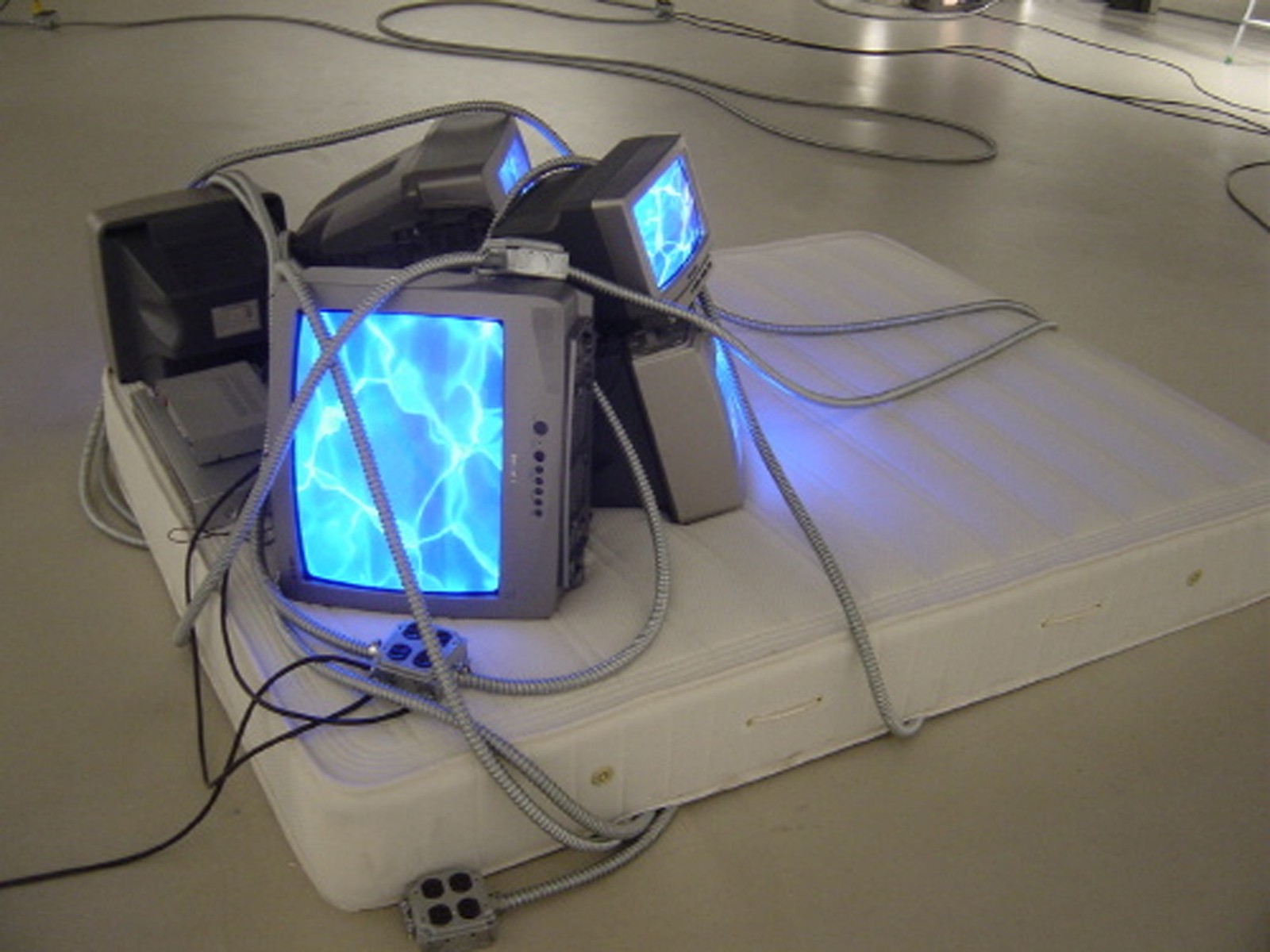 Mit der bevorstehenden Ausstellung Matthew McCaslin begeht Galerie Sima das 20jährige Jubiläum ihres Bestehens. (Am 25. September 1986, mit der Vernissage des jungen italienischen Künstlers Luigi Troia, begann die Galerie ihre Arbeit.) Es ist die besondere Verbundenheit mit dem Künstler - durch einige erfolgreiche Projekte markiert - die die Ausstellungswahl anläßlich des wichtigen Jubiläums bestimmt hat. LIFELINE war der Titel der ersten Ausstellung im Jahre 1995, es folgte die Ausstellung FUNHOUSE im Jahre 2000, jetzt also die dritte Ausstellung in der Galerie. Zwei kleine Publikationen zu den realisierten Projekten sind in den Jahren entstanden. Wie alle vorherigen Ausstellungen, wird der Künstler auch die Objekte der aktuellen Ausstellung an Ort und Stelle realisieren. Das umfangreiche Grundmaterial für seine Arbeit - etliche Ferneser, Kabel und diverse Geräte - füllen schon jetzt den Galerieraum, ein konkreter inhaltlicher Kommentar zu den entstehenden Objekten kann zum jetzigen Zeitpunkt jedoch nicht gemacht werden. Ein glücklicher Zufall wollte es: Die umfangreiche fünfteilige Arbeit LIFELINE des Künstlers, die die Eröffnungspräsentation des Neuen Museums in Nürnberg temporär begleitete, kann erneut als Teil der aktuellen Präsentation betrachtet werden.